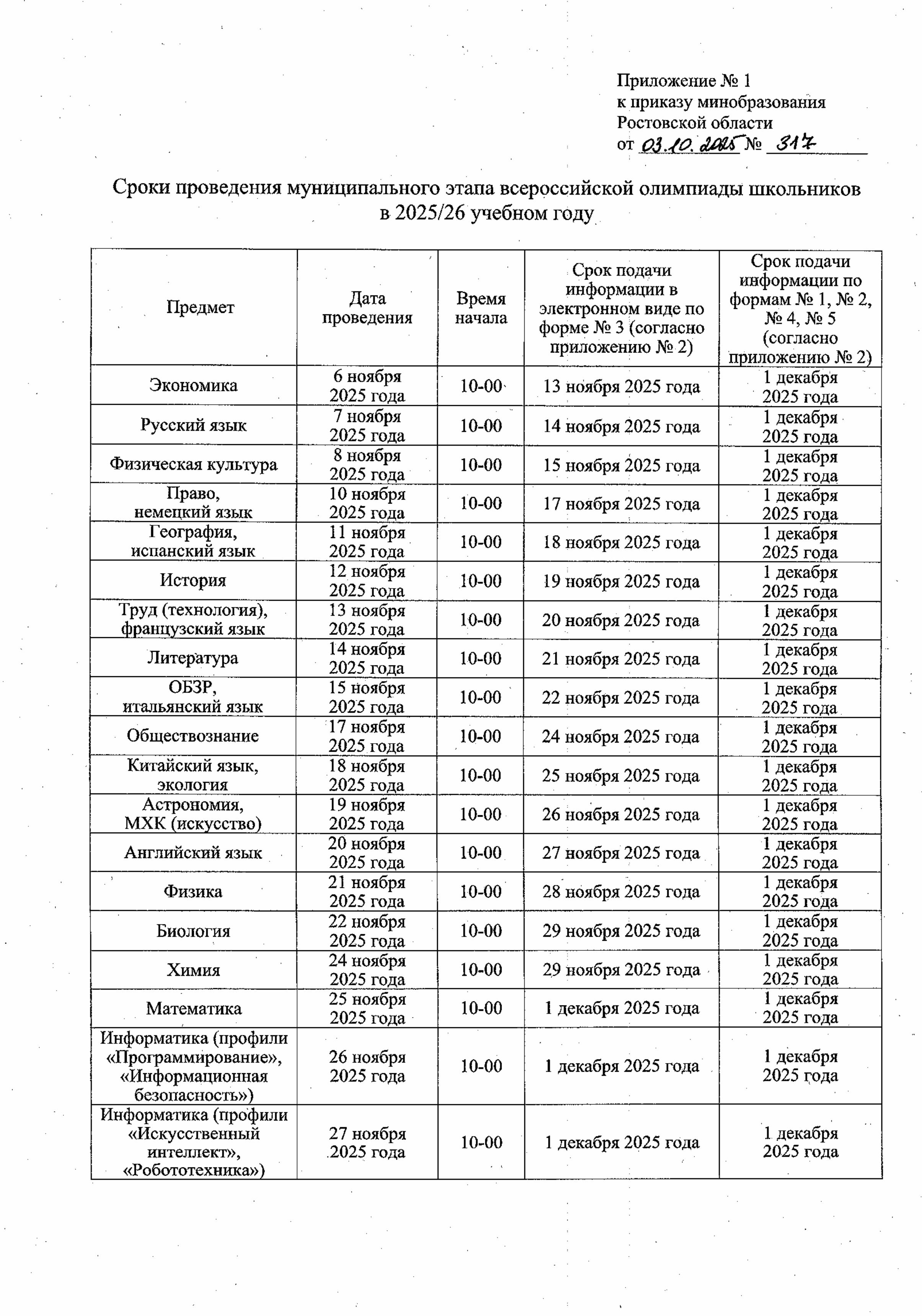 ГРАФИК ПРОВЕДЕНИЯ МУНИЦИПАЛЬНОГО ЭТАПА ВсОШ в 2025 -2026 учебном году