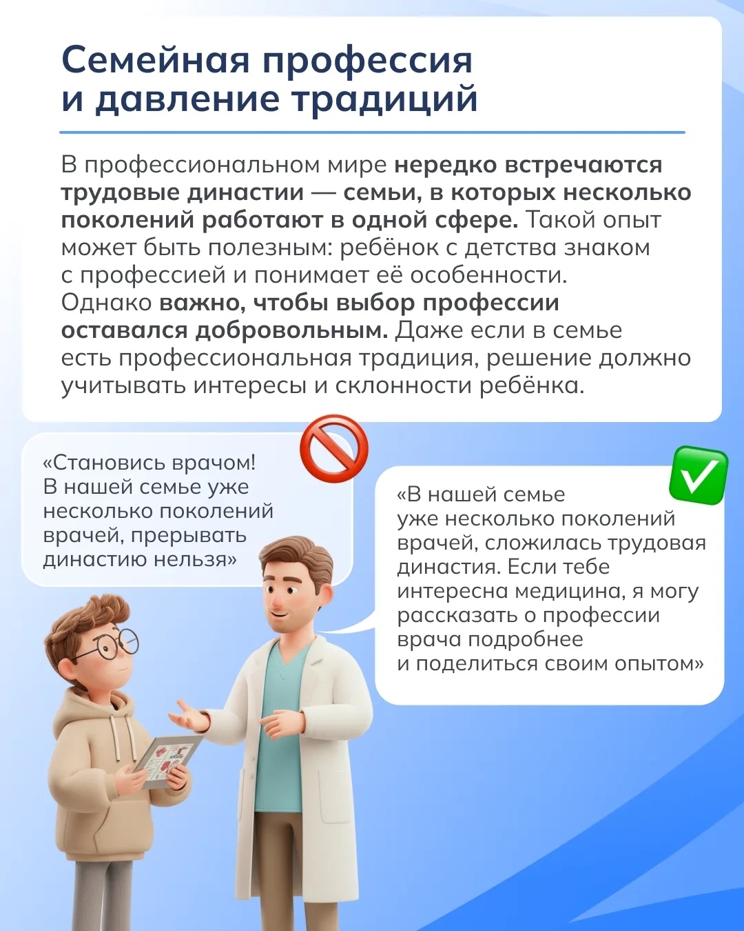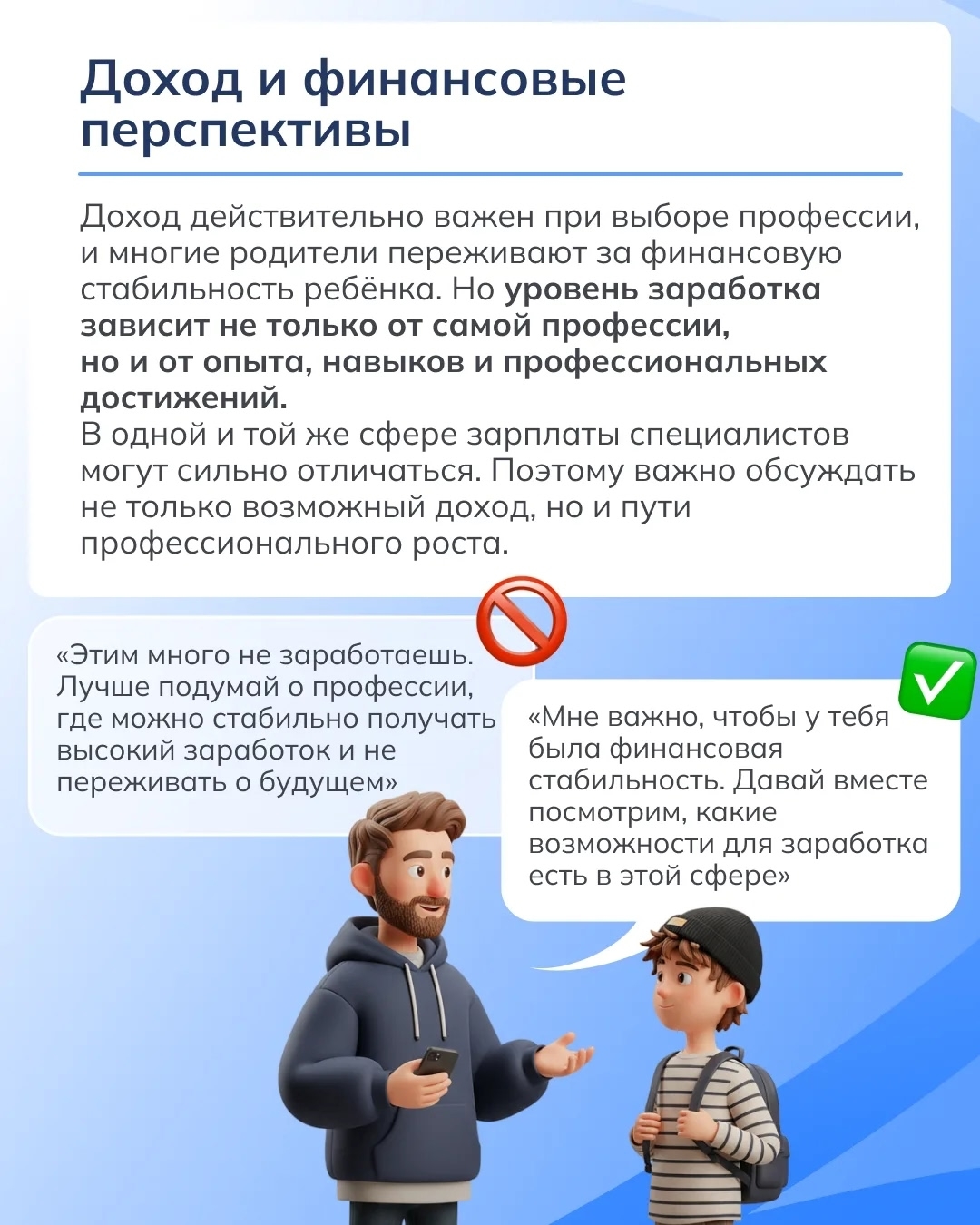 Уважаемые родители Предлагаем вашему вниманию примеры распространённых фраз, которые часто звучат в разговоре о будущей профессии, и варианты, которые помогут выстроить более конструктивный диалог.
